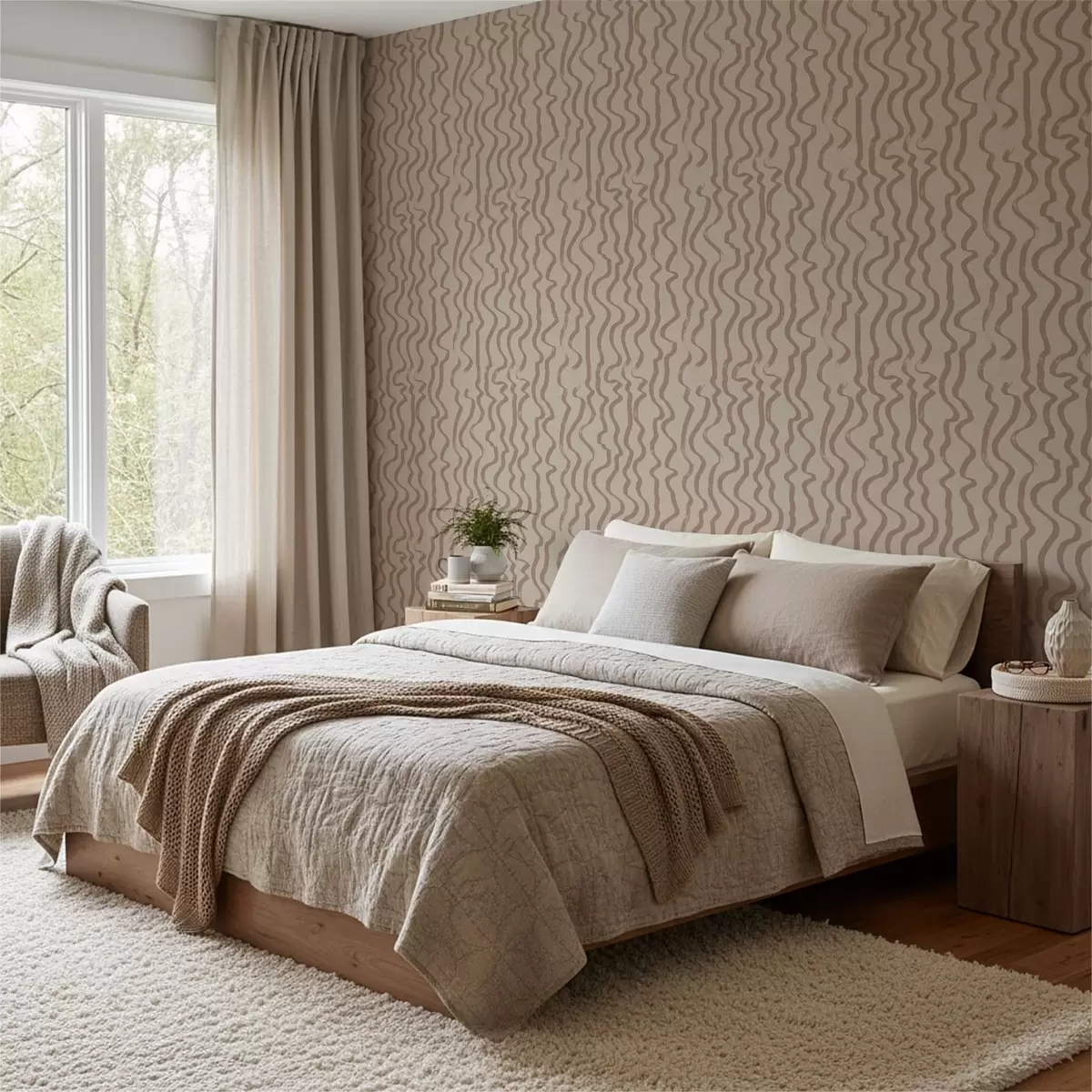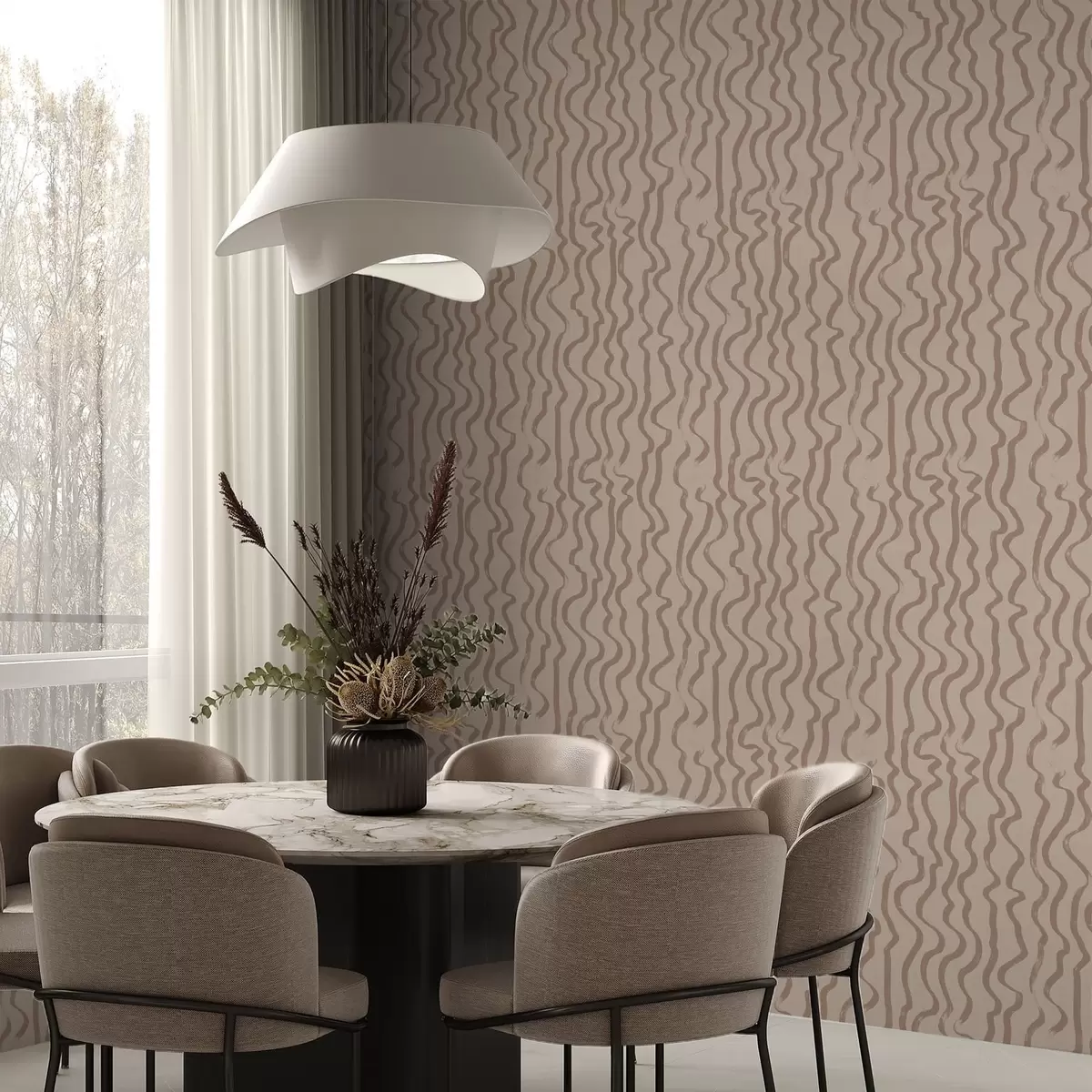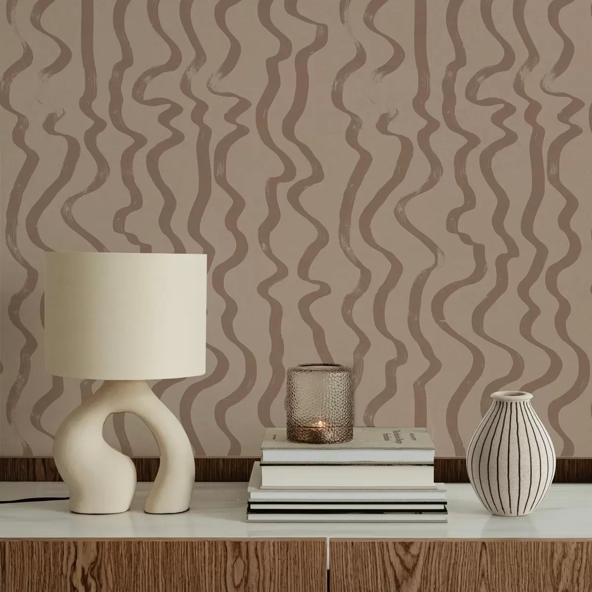 Tapetes Bēšas viļņotas līnijas uz gaiša fona Nr. a01168v2