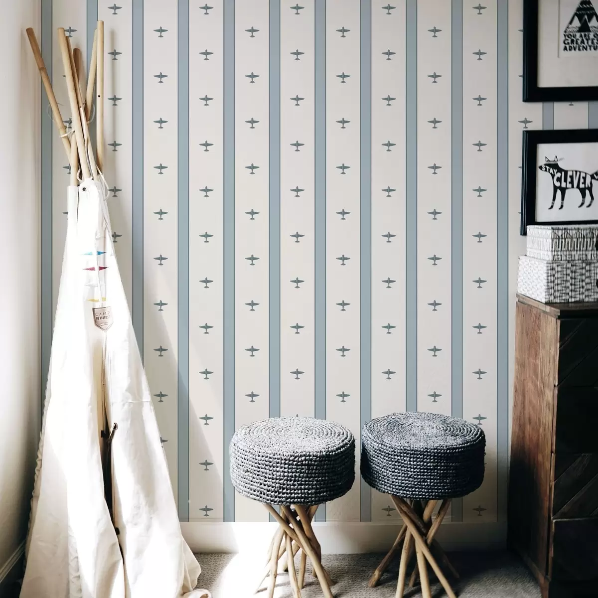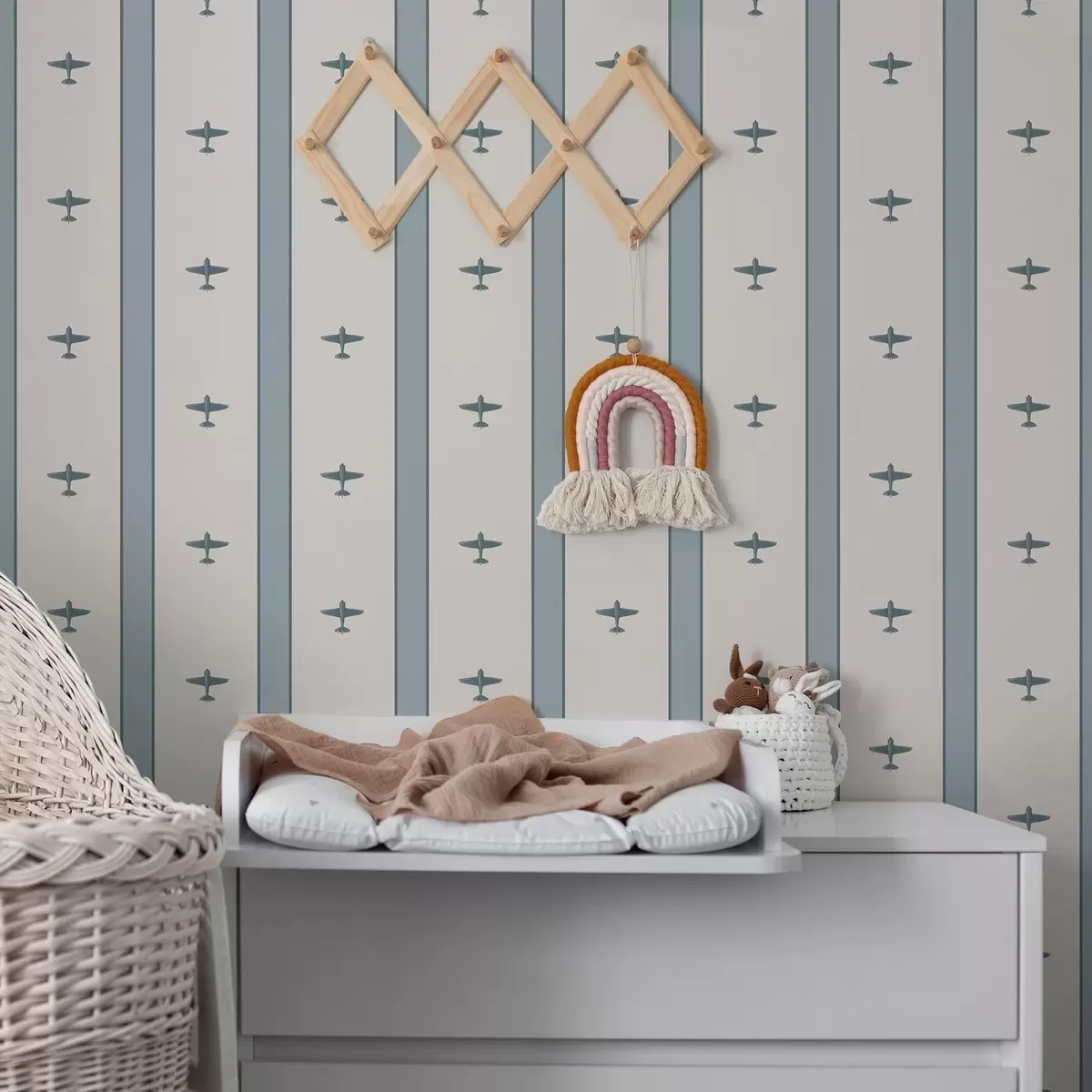 Tapetes Mazie lidmašīnas ar svītrām uz zila fona Nr. a01171