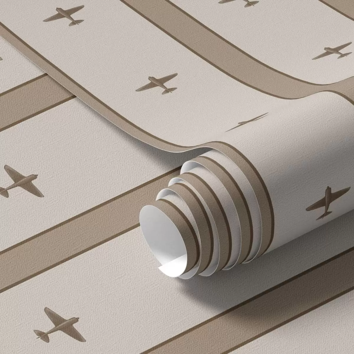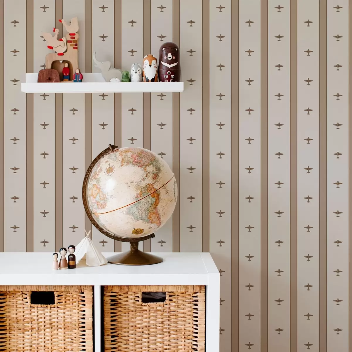 Tapetes Mazie lidmašīnas ar svītrām uz brūna fona Nr. a01171v2