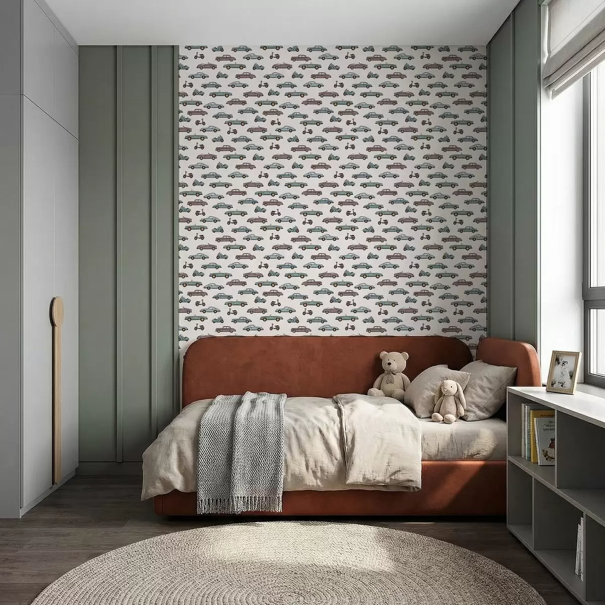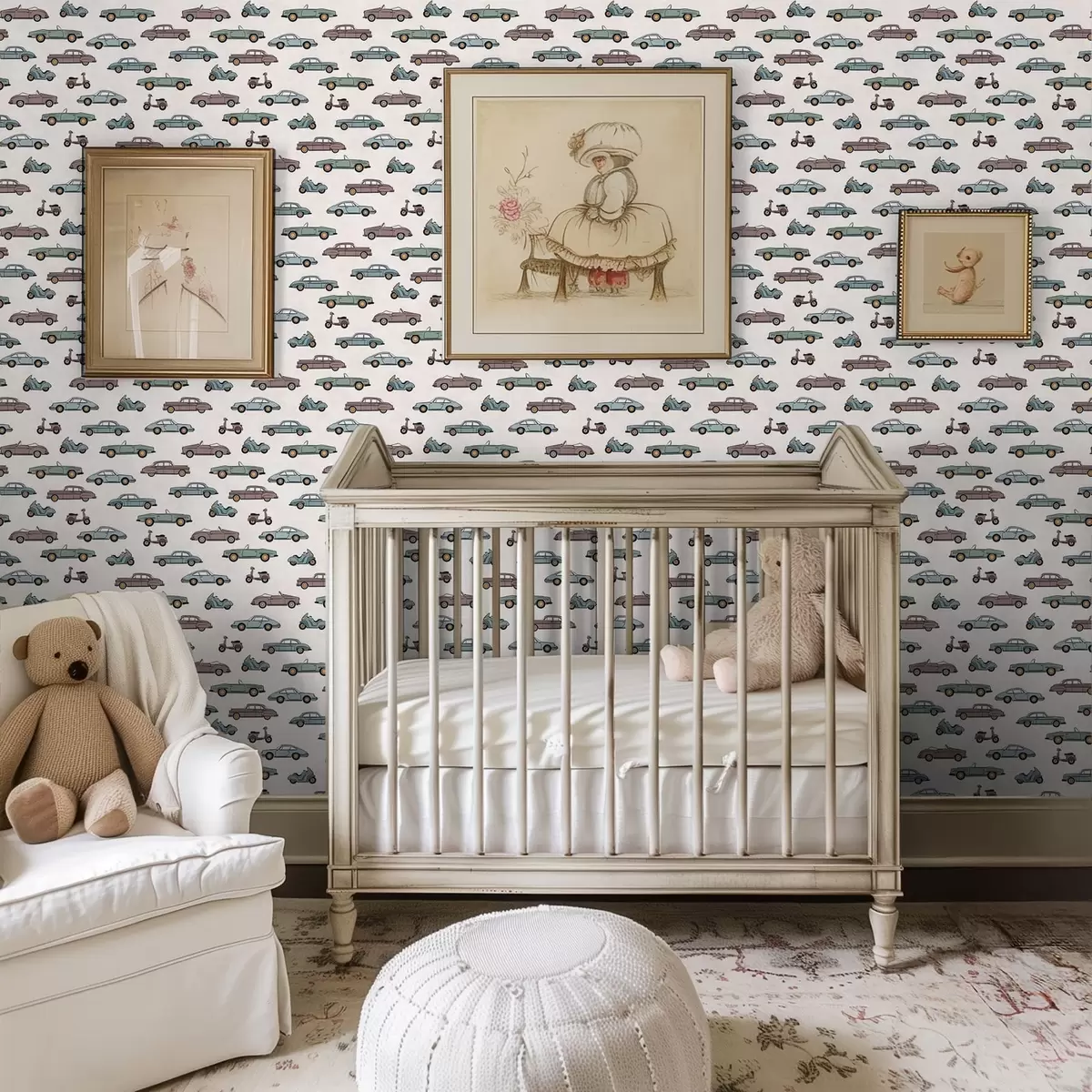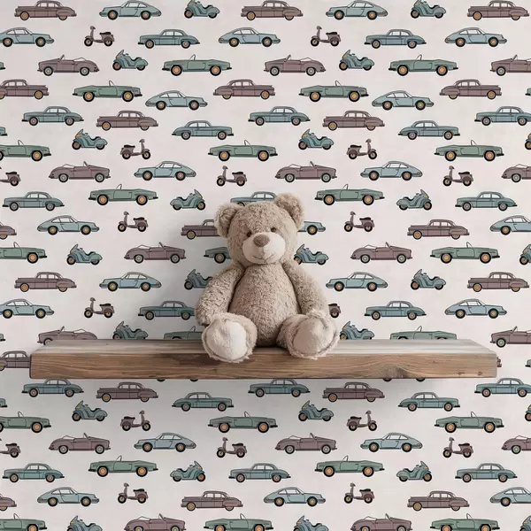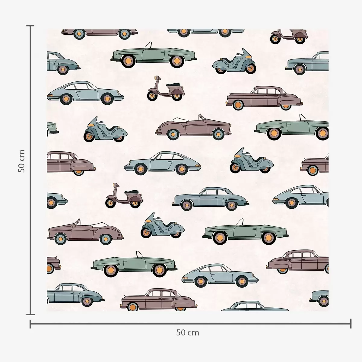 Tapetes Retro automašīnas un motorolleri uz gaiša fona Nr. a01172