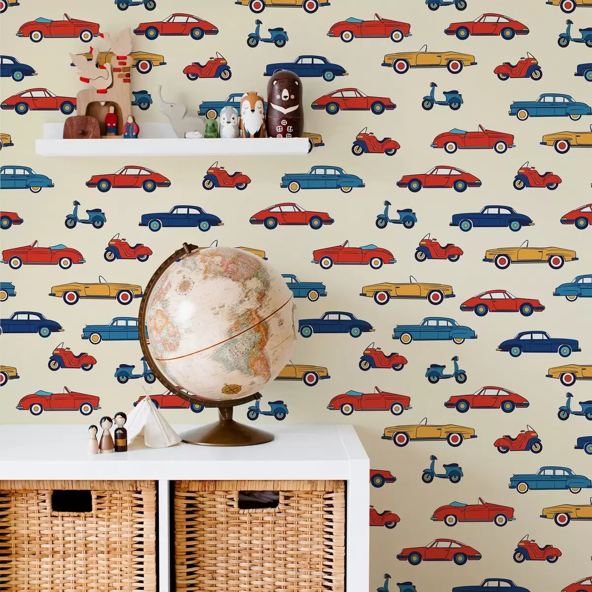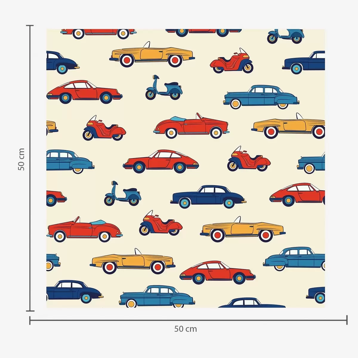 Tapetes Spilgtas retro automašīnas un motorolleri uz gaiša fona Nr. a01172v1