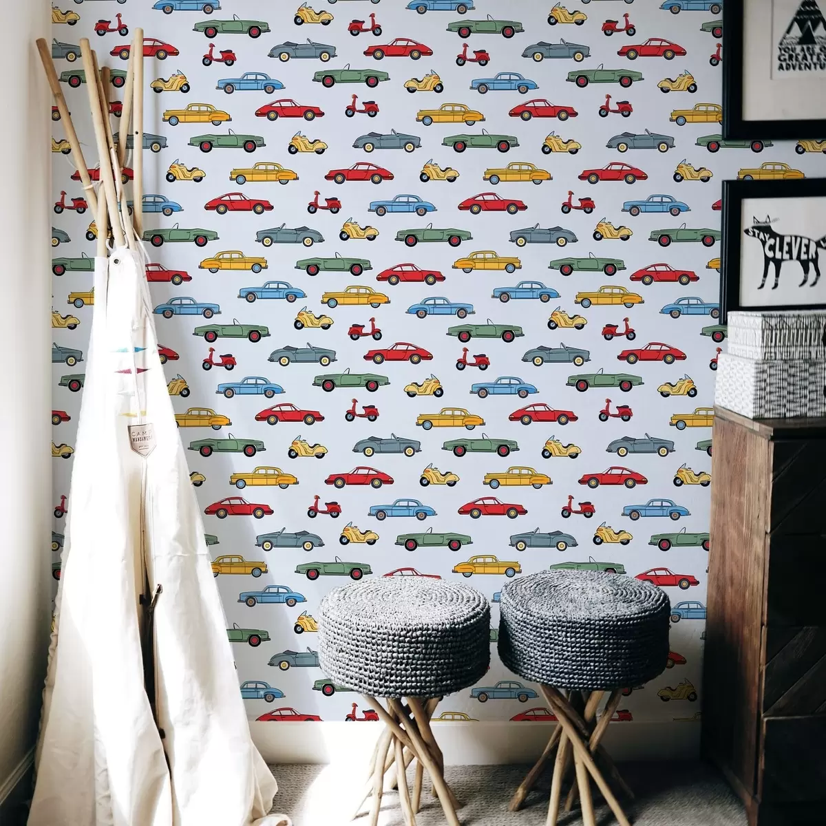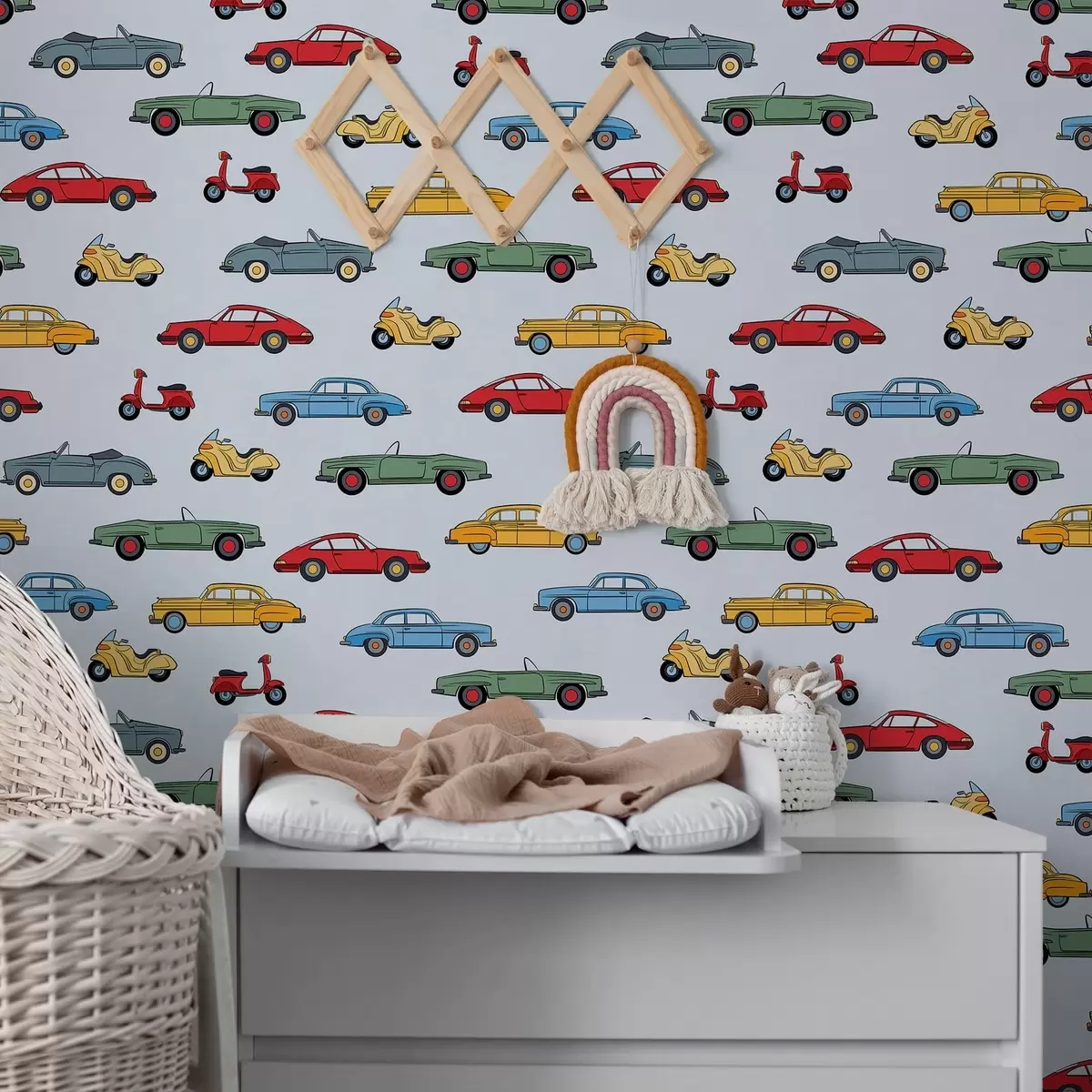 Tapetes Retro automašīnas un motorolleri uz zila fona Nr. a01172v2