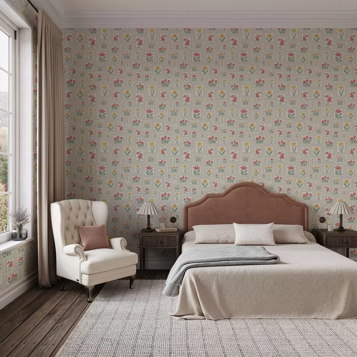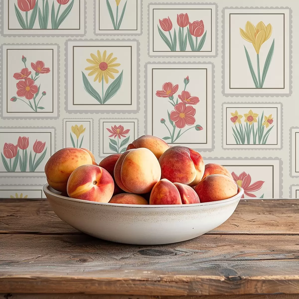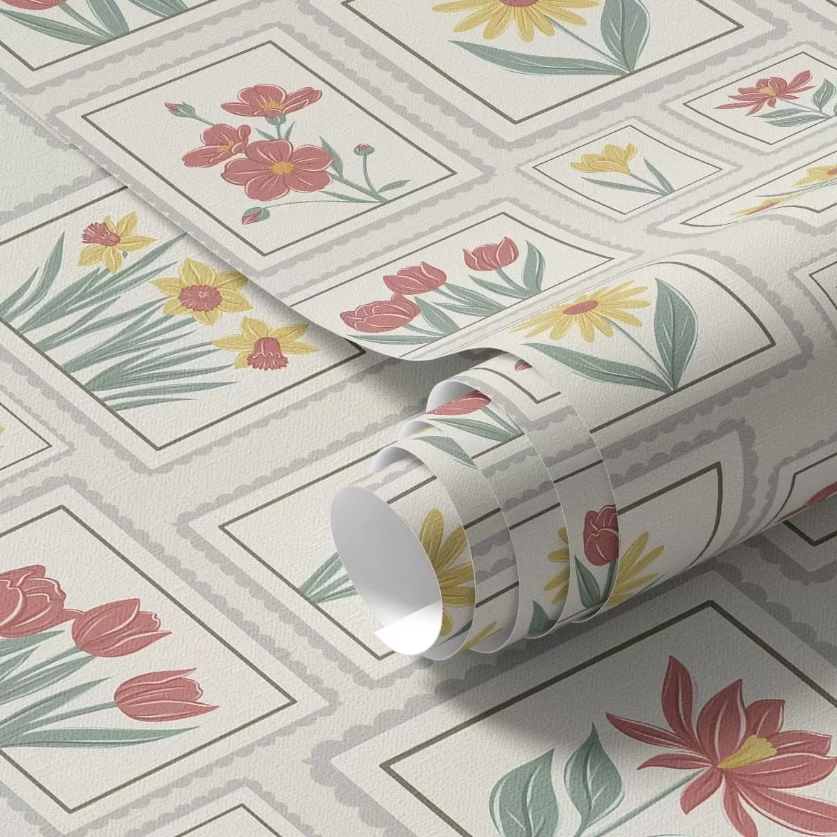 Tapetes Ierāmētas ziedu ilustrācijas uz gaiša fona Nr. a01173v1