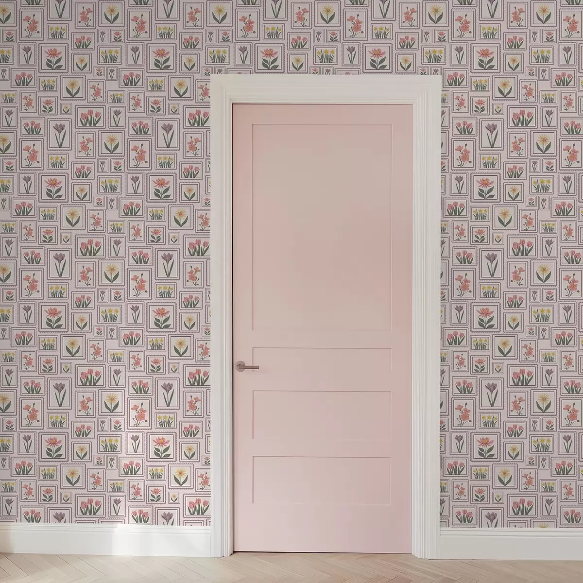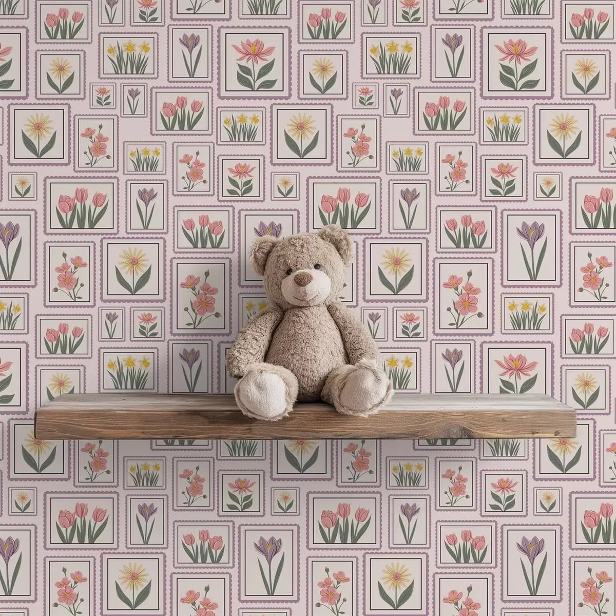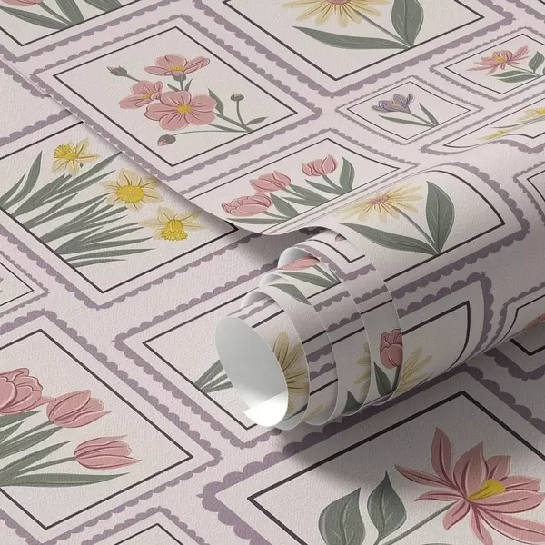Tapetes Ierāmētas ziedu ilustrācijas ceriņkrāsās Nr. a01173v2