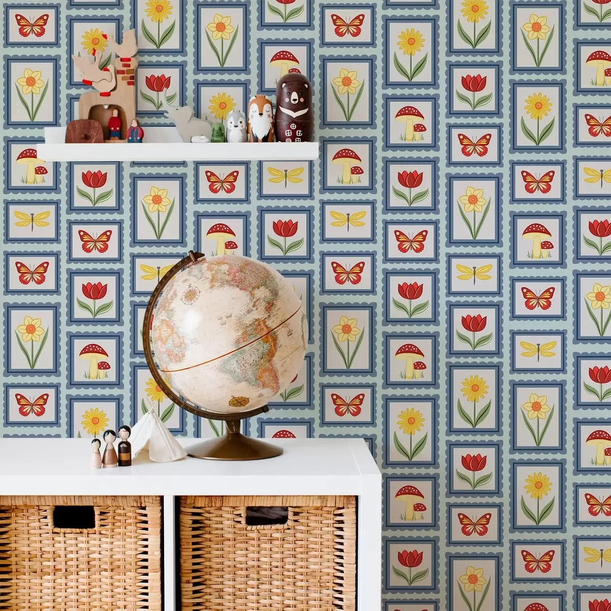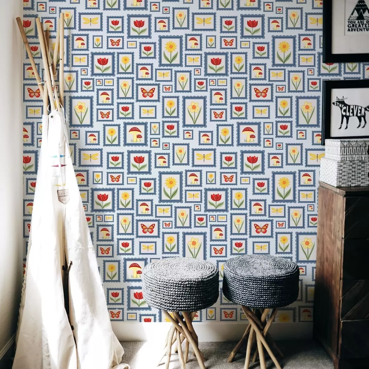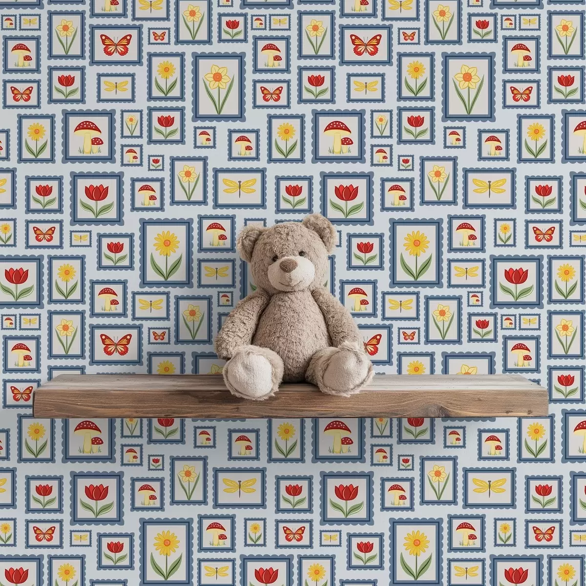 Tapetes Ierāmētas ilustrācijas uz zila fona Nr. a01176