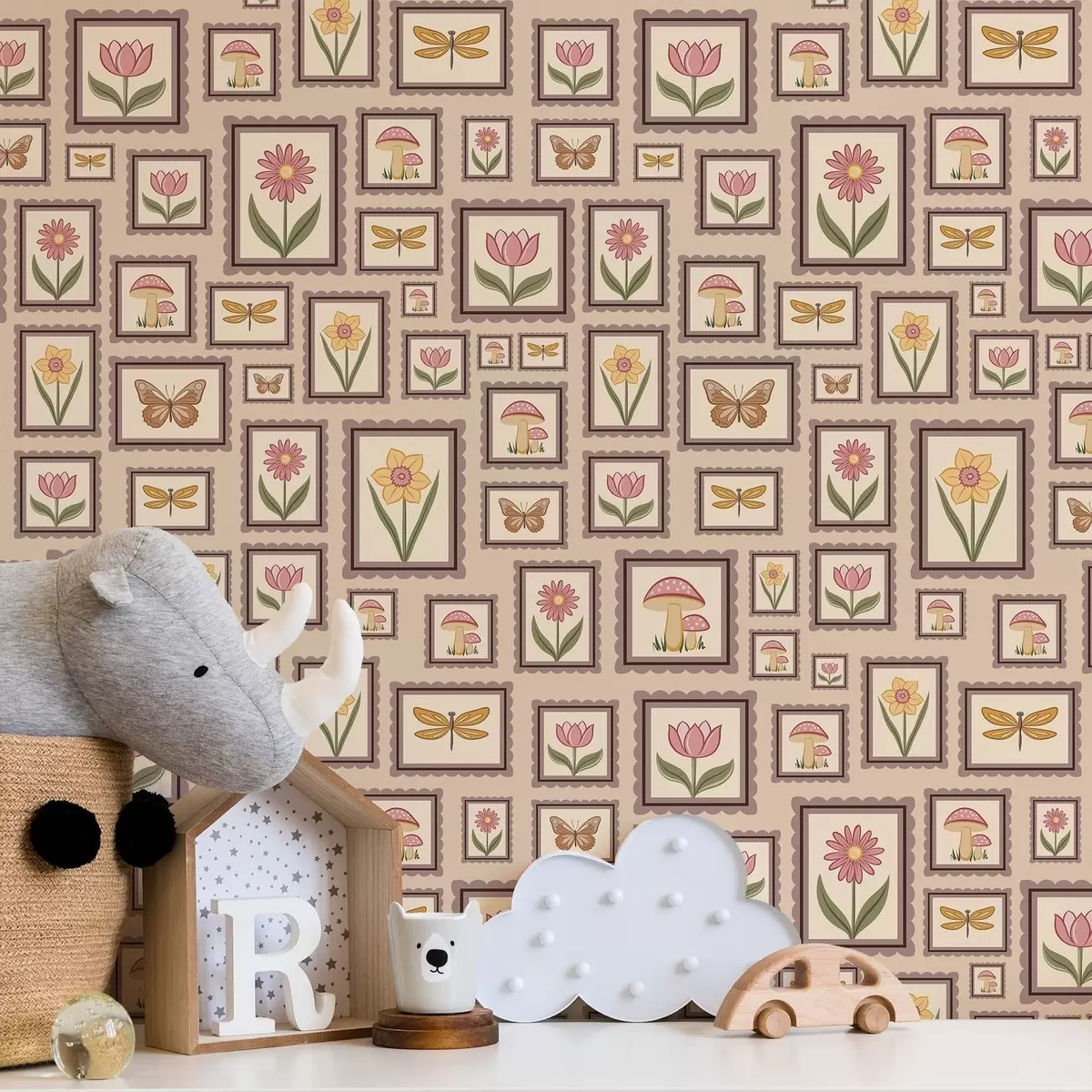 Tapetes Ierāmētas ilustrācijas siltos smilškrāsas toņos Nr. a01176v2