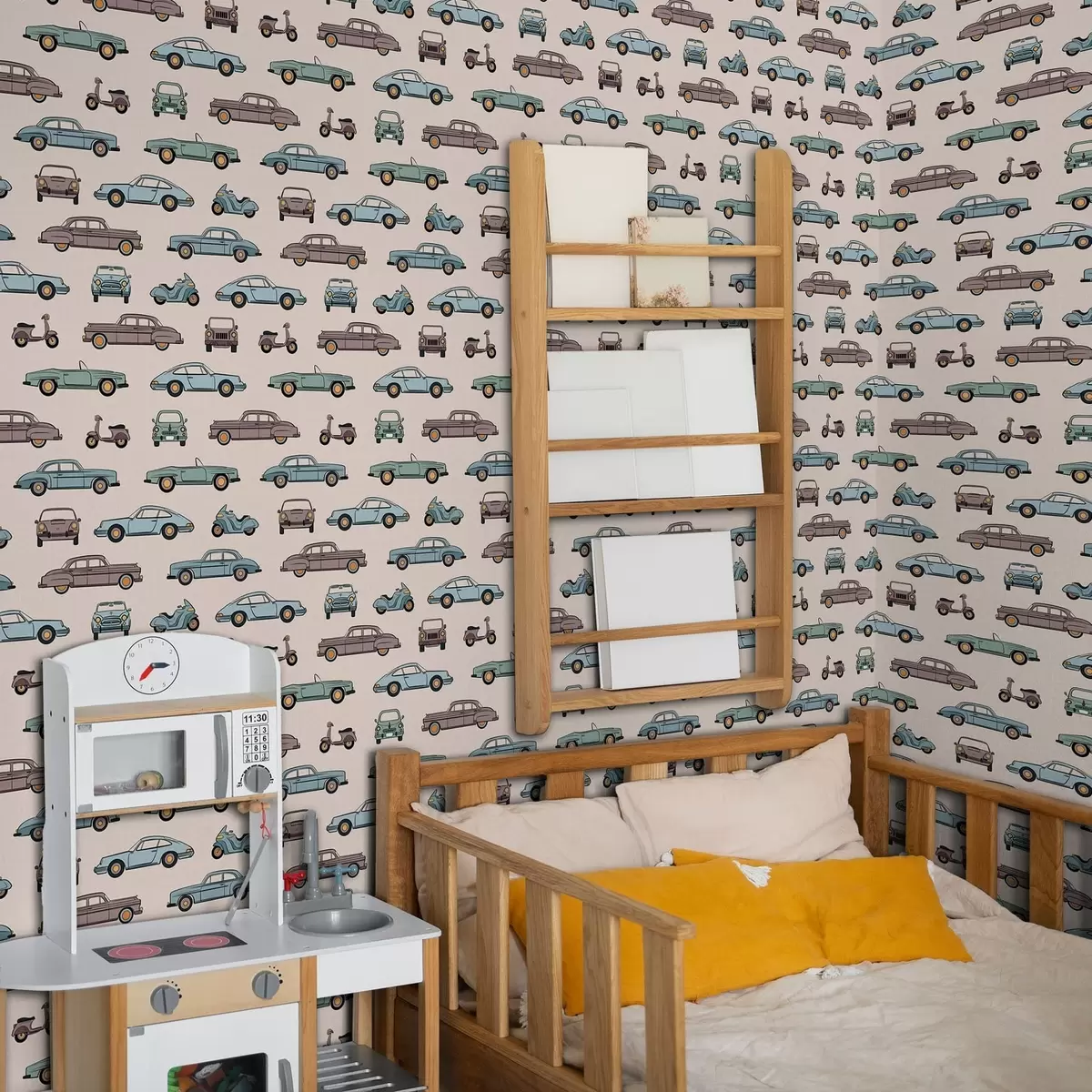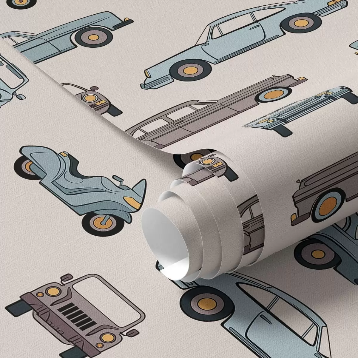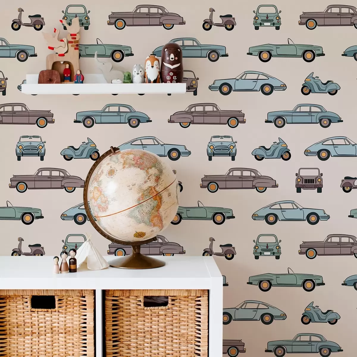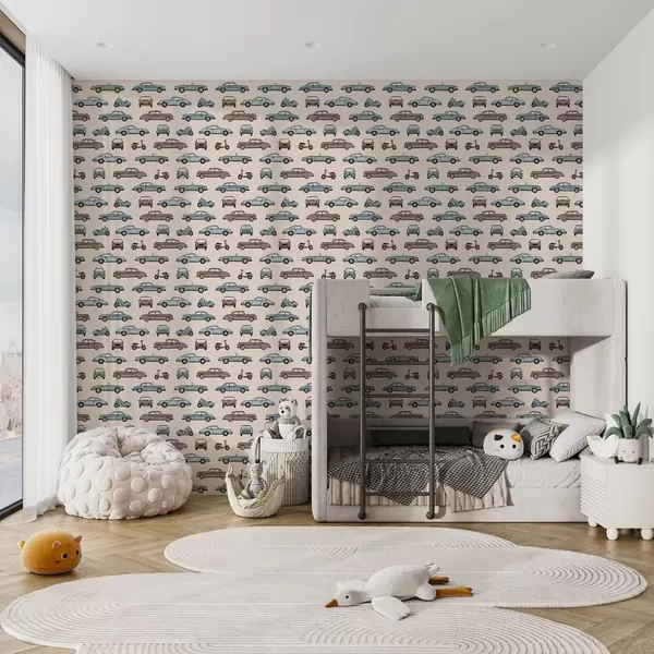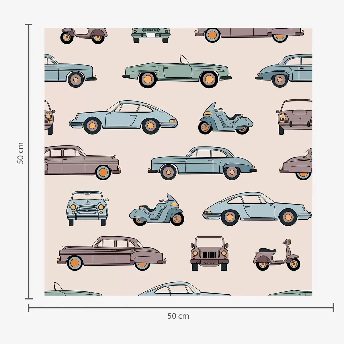 Tapetes Retro automašīnas un motorolleri uz smilškrāsas fona Nr. a01178v1