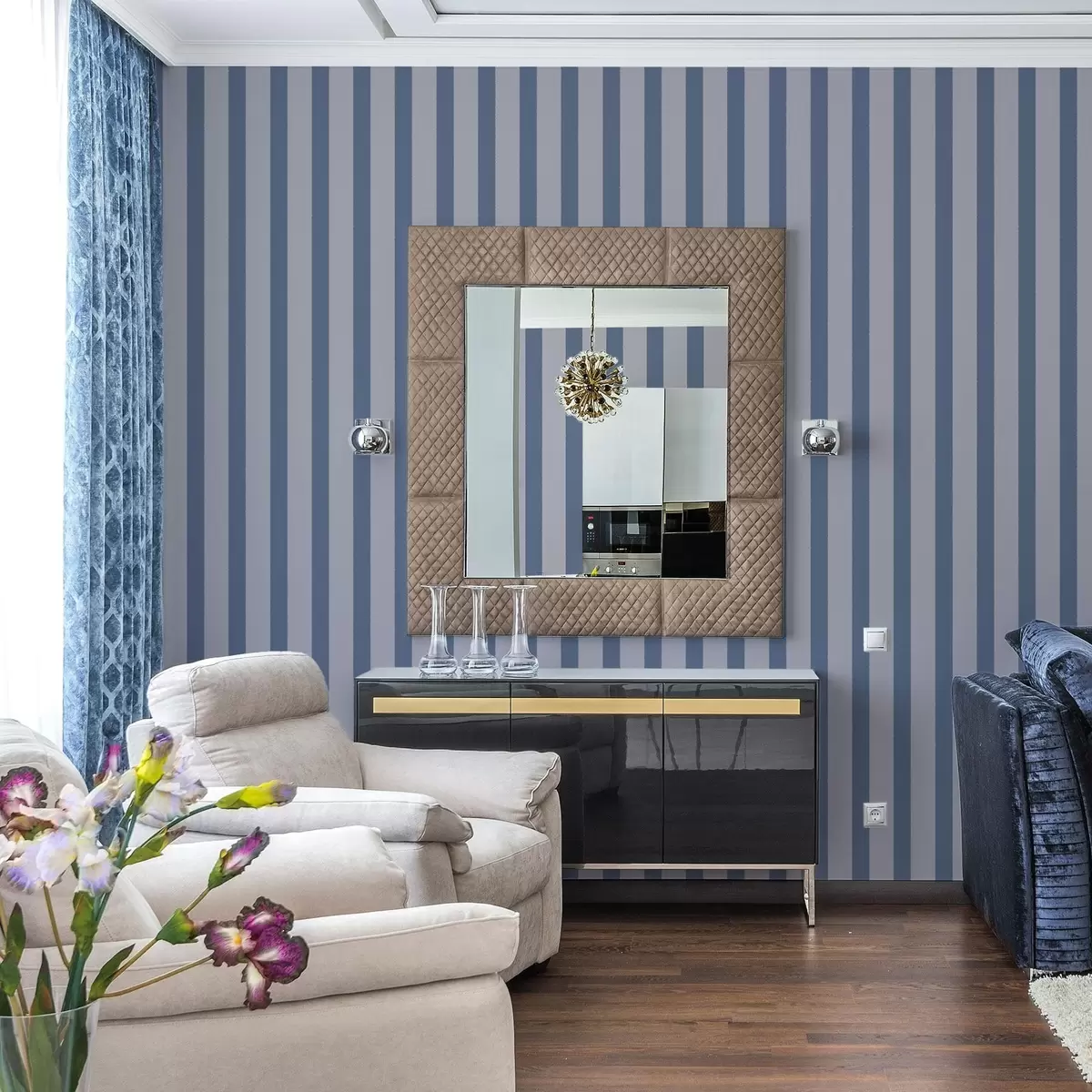 Tapetes Zilas un pelēkas vertikālas svītras Nr. a01180v1
