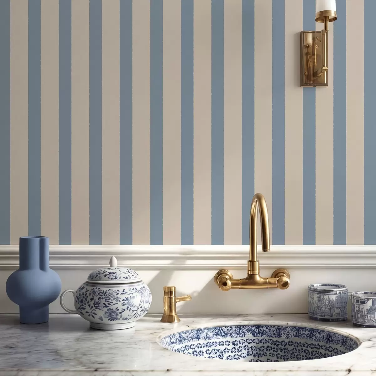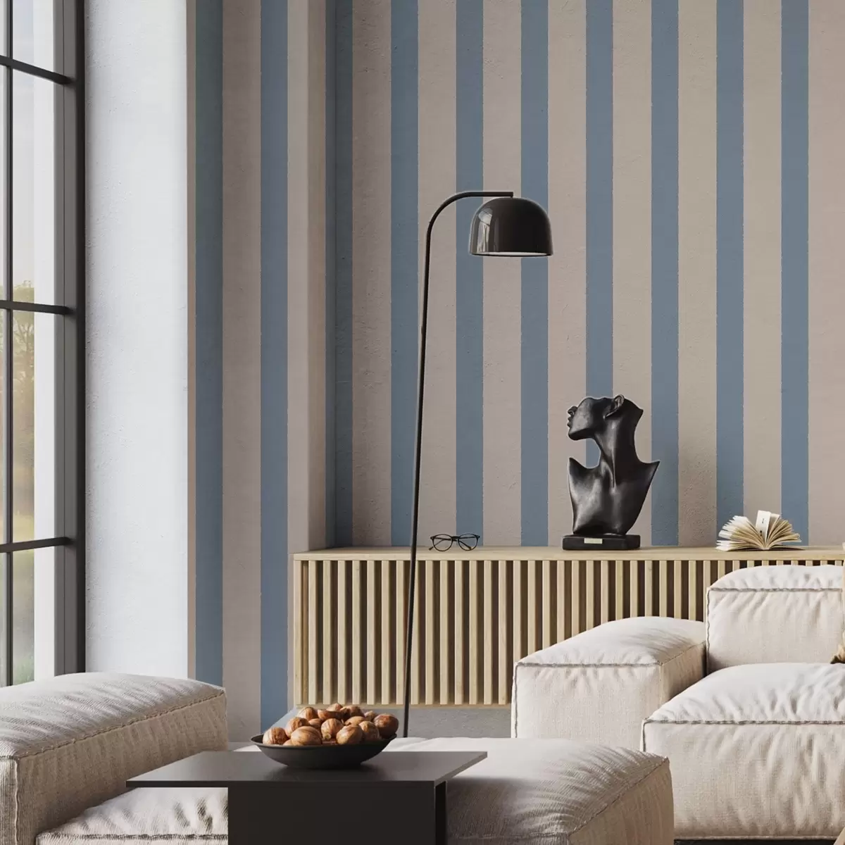 Tapetes Bēšas un gaiši zilas vertikālas svītras Nr. a01180v3