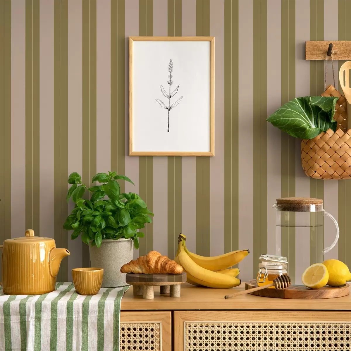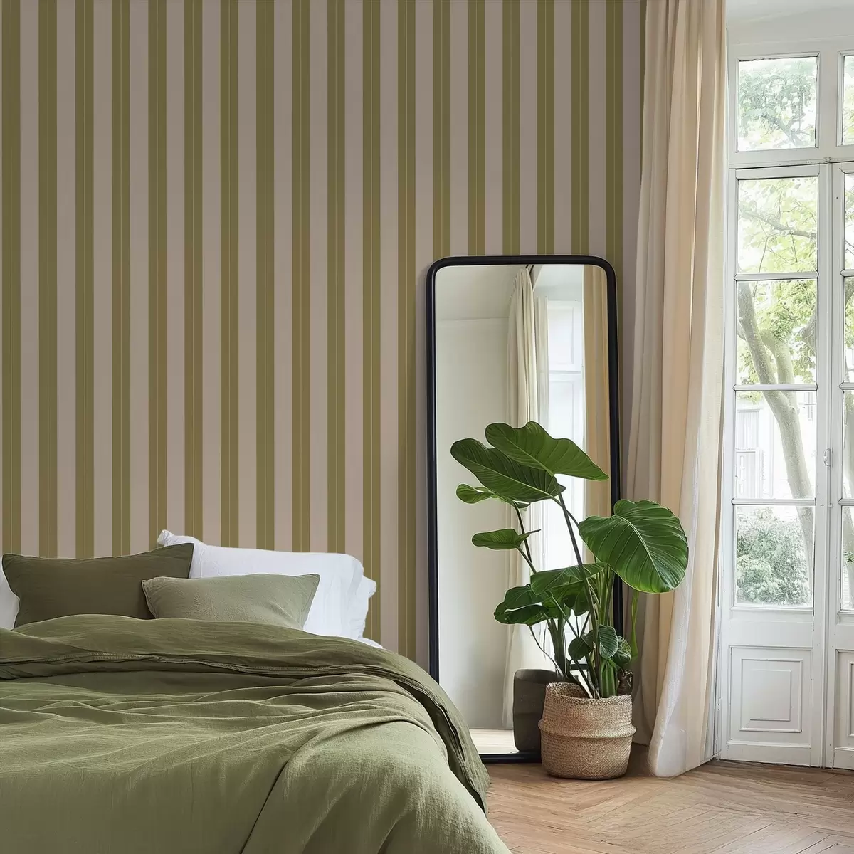 Tapetes Olīvu un smilškrāsas vertikālas svītras Nr. a01181v2
