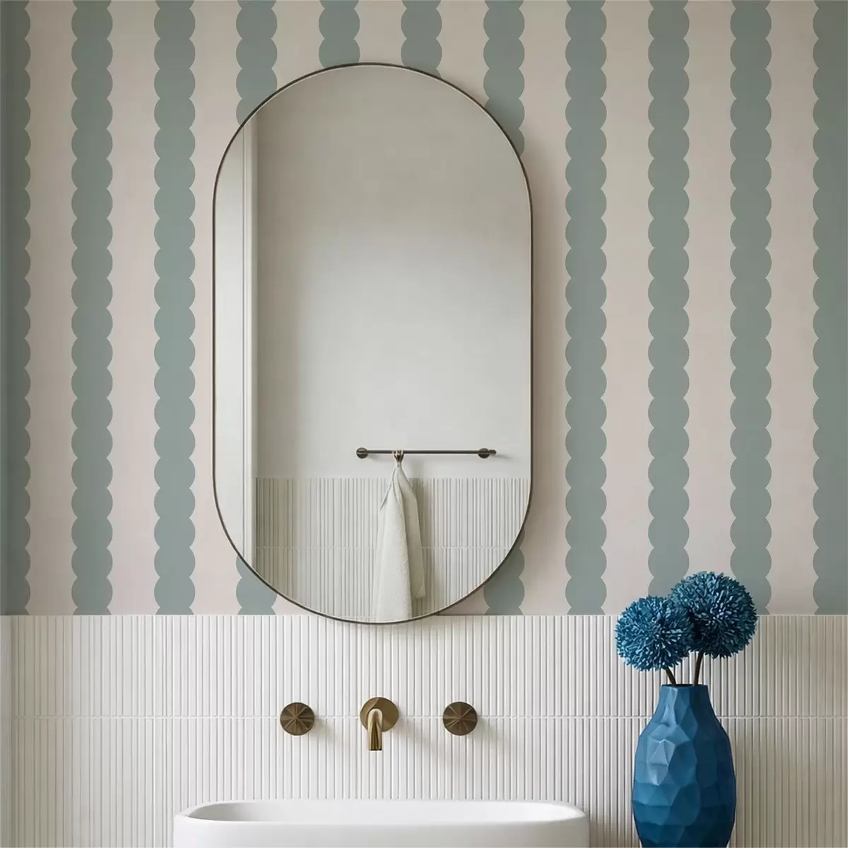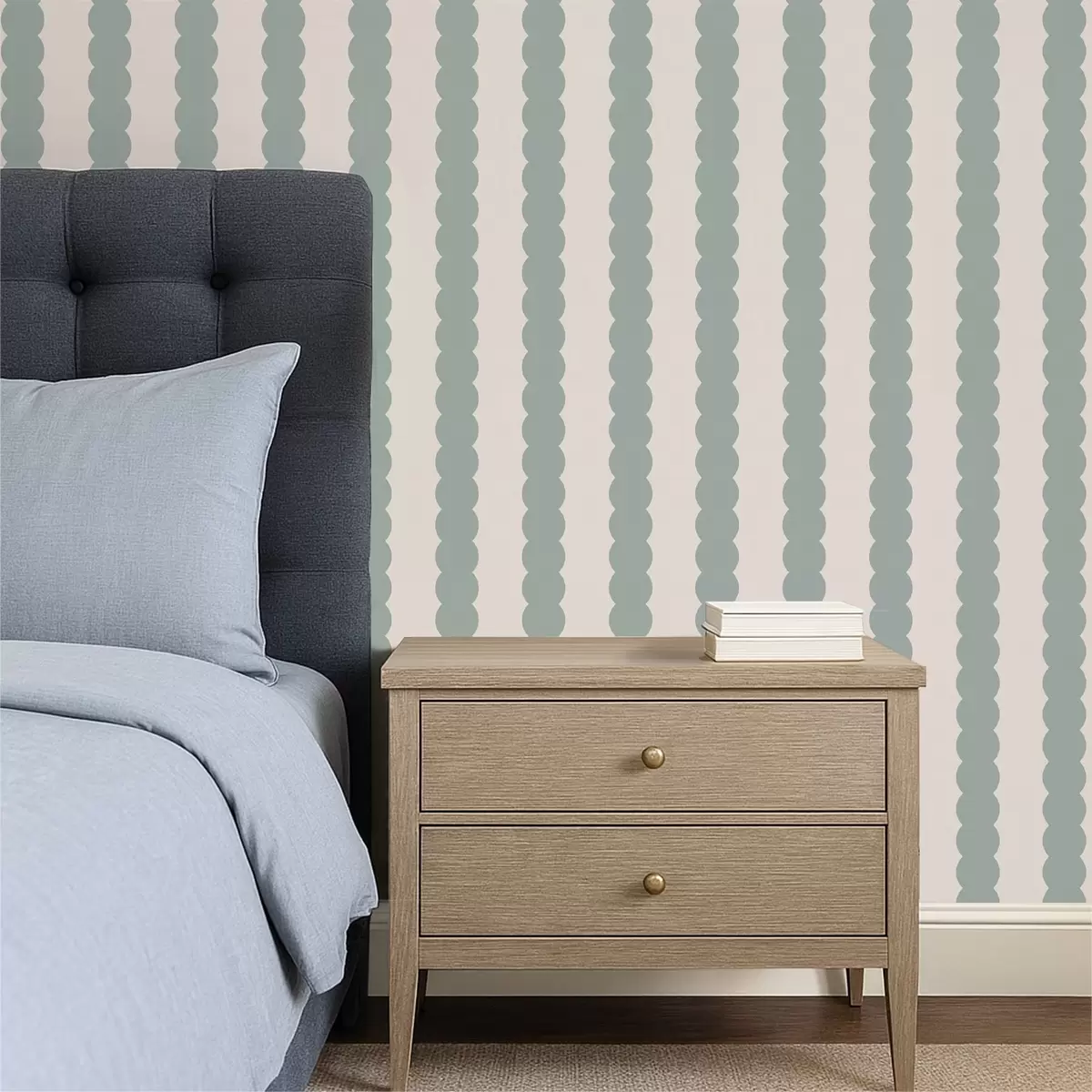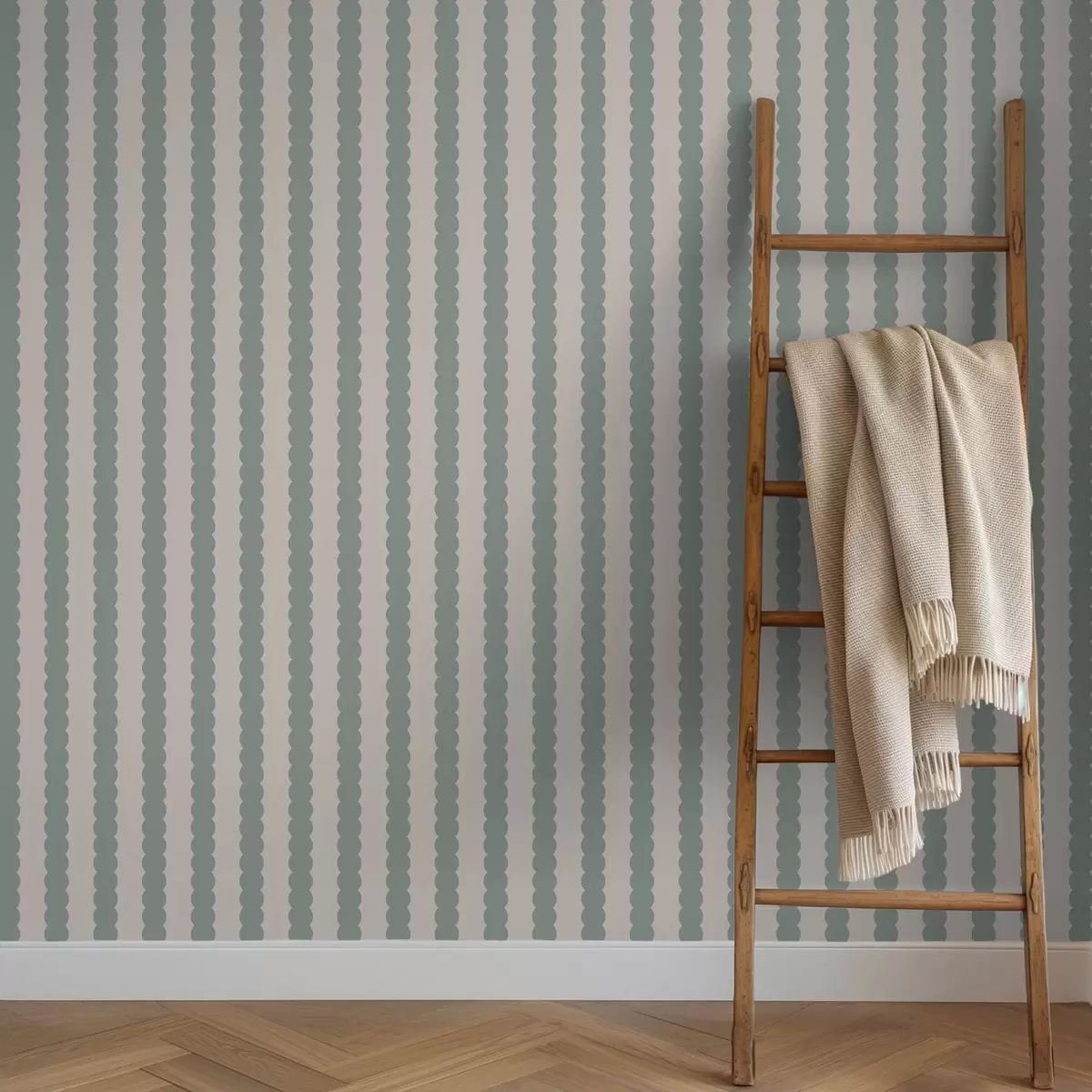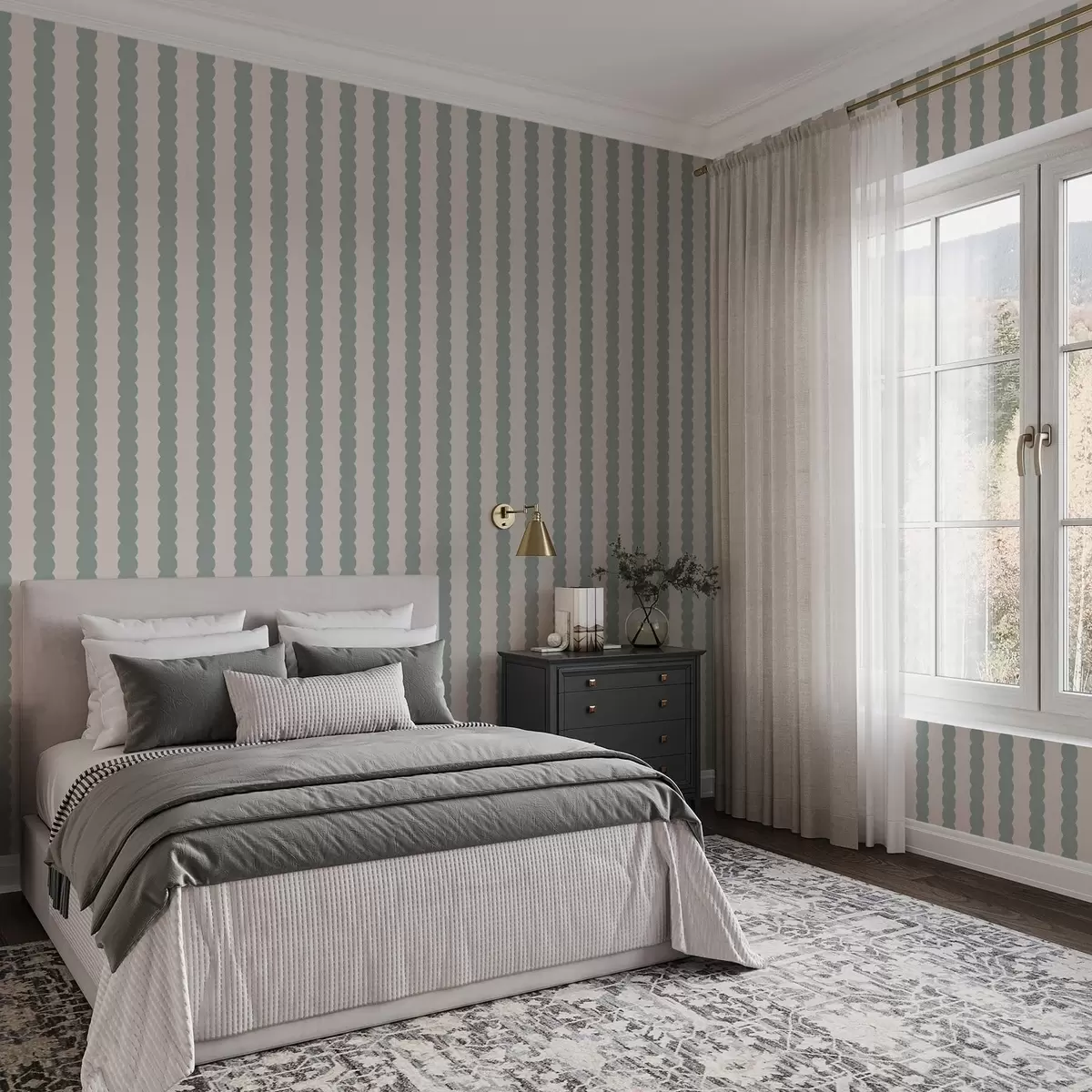 Tapetes Olīvu krāsas viļņveida svītras minimālisma stilā Nr. a01182v1