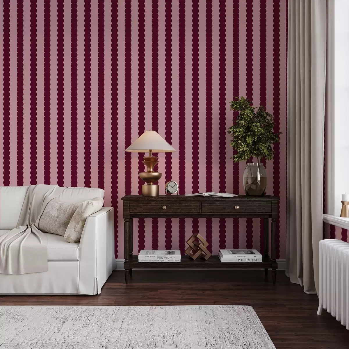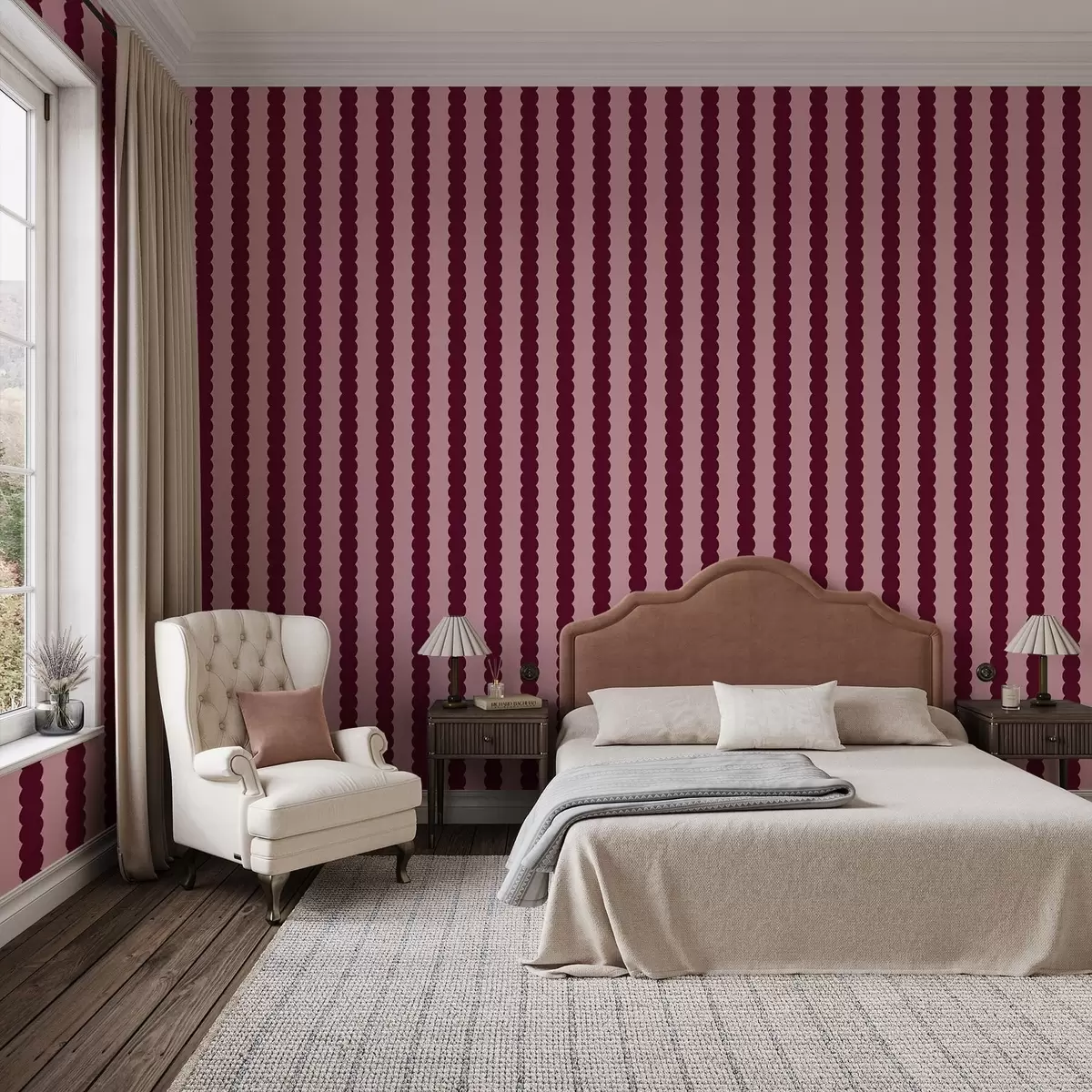 Tapetes Burgundijas krāsas viļņotās svītras minimālisma stilā Nr. a01182v5